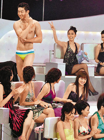 各位泳裝港男上到評判席拉票,其中以4號最主動跪在地上獻吻,至于今年性感的女評判們,可能獲無線高層叮囑過不能與港男有身體接觸,個個表現(xiàn)得好斯文,沒有去年伍詠薇吸氧氣的奇景。最后兩輪比賽,結果由1號陳偉洪以915票大比數(shù)拋離對手,7號許家杰以443票僅次其后。