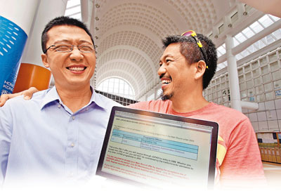 29日是聯(lián)招發(fā)榜的大日子,正在會計師樓做實習生的黃榮新趁午膳時間外出,在傳媒見證下,與恩師陳兆焯一同上網(wǎng)查閱聯(lián)招結果。盡管已獲樹仁大學工商管理課程錄取,黃榮新仍難掩緊張心情,指著計算機屏幕的手指都在顫抖,甚至幾次點擊聯(lián)招編號都出錯。
