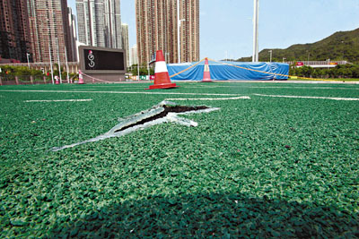 香港康文署總康樂事務(wù)經(jīng)理周志文也指,康文署職員每天都會檢查運(yùn)動場情況,若再發(fā)現(xiàn)有地面不平情況,會盡早通報。