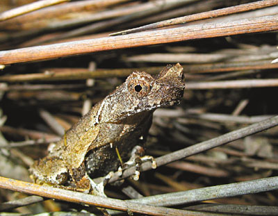 發(fā)掘?qū)W生組“十大熱點(diǎn)”冠軍的蘇樂軒,現(xiàn)就讀香港大學(xué)生態(tài)及生物多樣性學(xué)系,他在一次生態(tài)夜行中,在龍虎山郊野公園發(fā)現(xiàn)愛“夜蒲”的短腳角蟾。他指出,短腳角蟾是香港原生物種,臉上有角,樣子趣怪,多在夜間出沒,雄性更會在每年夏春的繁殖期利用叫聲吸引雌性,已被世界保育聯(lián)盟評為瀕危物種。