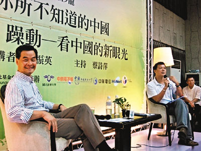 “思沙龍”以《你所不知道的中國》為題,參加人數超過300人,據說還有不少人不得其門而入。梁振英在演講中不忘“銷港”,談到過去30年,香港也參與在內地的改革開放之中,香港與內地的互動發(fā)展不僅在經濟方面,而在文化、生活方式、語言、以至觀念等各方面都已經發(fā)展到“你中有我,我中有你”的相互影響的狀況。