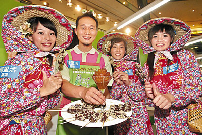 另外,臺灣觀光協(xié)會亦與當(dāng)?shù)?2間農(nóng)莊合作,在荷里活廣場舉行“臺灣農(nóng)莊美食節(jié)”,將當(dāng)?shù)氐慕?jīng)典小食帶到香港。市民只要向港澳臺灣同鄉(xiāng)基金會捐出10元善款,就能入場品嘗經(jīng)典地道美食。