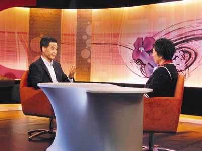 在如何平衡香港及內(nèi)地利益的問(wèn)題上,梁振英則表示,他個(gè)人的立場(chǎng)是要為香港的利益出發(fā),但同時(shí)要顧及國(guó)家的利益,并補(bǔ)充指港商早前因廣東省的“騰籠換鳥(niǎo)”政策而受到很大影響時(shí),他曾在一次與內(nèi)地官員的會(huì)議上反映問(wèn)題,最后中央及廣東省政府都有聽(tīng)取他的意見(jiàn),故兩者的利益并不存在矛盾。