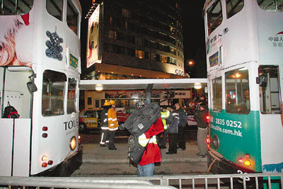 中新網(wǎng)12月28日電 據(jù)香港《文匯報》報道,27日晚氣溫驟降兼下冷雨,兩輛先后于跑馬地開出的電車,駛至皇后大道東對面時,疑因天雨路滑,后車收剎不及,撞撼前行正進站電車,釀成共12名乘客及1名車長受傷,須多輛救護車將各人送院治理。