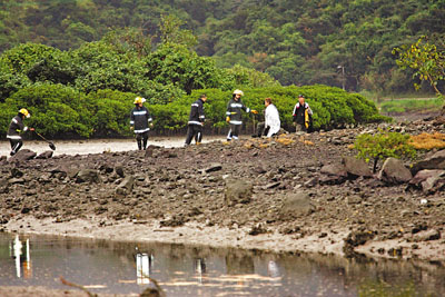 警方消息稱,3日凌晨3時(shí)許,裘與陳到達(dá)鹿頸路對(duì)面沙頭角海邊,適遇上潮退,露出一片寬約200米的泥灘,兩人遂冒險(xiǎn)摸黑涉灘,圖步往海邊釣大魚,但因泥灘瘀泥深及膝頭,舉步維艱。