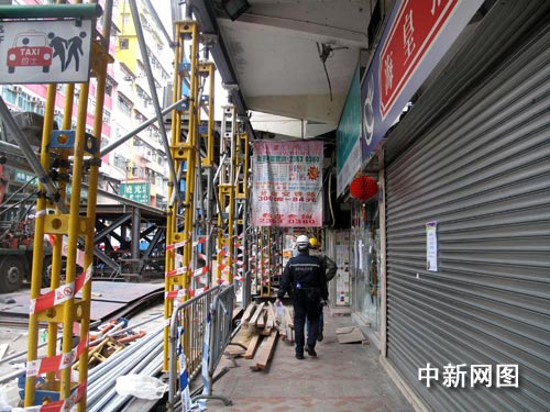 馬頭圍道塌樓周圍的善后工程仍在進行。但在臨時鋼架支撐的樓房內的生活,自然不會踏實。同一排灰黃色的唐樓下,幾家店鋪仍開著門,生意似乎都較冷清。反倒是最靠近事故現場的那家掛著大大的“拆樓”布幅的雜貨鋪內,來幫襯的街坊要多些。街對面的北帝廟,依然青煙裊裊。