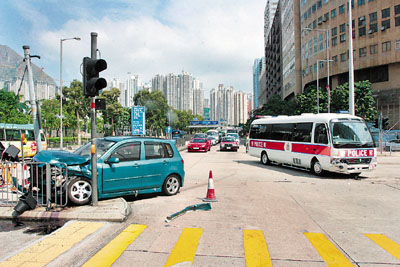 此時剛有一輛屬于警察機動部隊的24座位未載客中型巴士擬駛往輔警總部,巴士沿啟祥道西行駛至交界處,車長不防有私家車右轉(zhuǎn)而至,兩車俱收剎不及在交界處互撼。