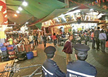 廟街商會主席陳錦榮10日說:“我們這么多人,天眼是死的,人是生的,更可靠!彼粲醺魃虘艏訌娛赝庾R,若再發(fā)生類似事件,應(yīng)盡量在一分鐘內(nèi)分頭監(jiān)視附近“三無”大廈,即無保安員、閉路電視及閘門的大廈梯口,爭取“黃金一分鐘”,以便警方趕至抓犯。記者10日走訪港九多個被犯罪學家稱為高危的行人專用區(qū)及露天購物熱點,多個商戶紛紛響應(yīng)號召。