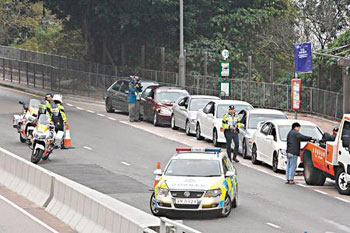 10日清晨6時(shí)30分,警方接獲多個(gè)市民舉報(bào),指有10多輛汽車,高速沿薄扶林道向香港仔飛馳,懷疑有人進(jìn)行非法賽車。警方于是在薄扶林村對面設(shè)立路障阻截,并派出一輛警車從后包抄。參與非法賽車的車輛,駛近薄扶林村發(fā)現(xiàn)前有警員守候時(shí),紛紛掉頭,向中環(huán)方向高速竄逃。