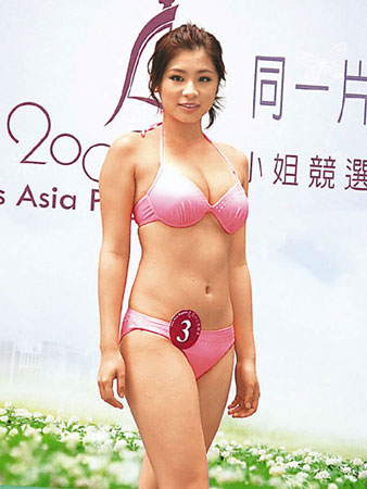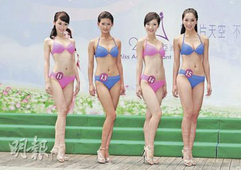 中新網(wǎng)10月15日電 據(jù)香港《文匯報》報道,2009年亞洲小姐選舉候選佳麗14日在香港荃灣一間酒店以泳裝在池畔與傳媒見面,但2號王,幓忌蠚夤苎兹毕,只有18位佳麗亮相。大會安排佳麗穿上比基尼泳裝,各佳麗身裁都顯得突出。
