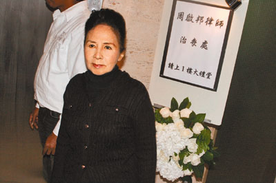 4時(shí)10分,周國(guó)豐妻子及剛滿月的兒子周禮淳到達(dá)殯儀館,囝囝剛滿月,不宜逗留太久,只到一到。約5點(diǎn)20分,周啟邦遺孀譚月清到達(dá)殯儀館,并透露選了四季不同的衣服給亡夫陪葬,又會(huì)燒樓燒車給亡夫。問到其心情如何?她坦言已平伏些,更贊兒子好乖,會(huì)陪她吃飯,孫兒好得意。問她想對(duì)亡夫講什么?她即說:“好掛住他,沒有人可以代替他,永遠(yuǎn)懷念他!”