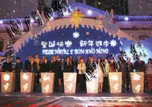 亮燈儀式昨日下午六時舉行。隨著主禮嘉賓按鈕,全澳的節(jié)日燈飾實時放亮,璀璨奪目。文化中心兒童合唱團獻唱圣誕歌曲及圣詩,喜悅的樂章、清脆的歌聲遍布廣場;圣誕老人在現(xiàn)場向嘉賓及居民派發(fā)糖果,逗得小朋友歡天喜地。
