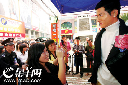 據(jù)了解,今年的聯(lián)展首度吸引了港澳諸多知名景區(qū)的加盟,如香港海洋公園、杜莎夫人蠟像館等。他們都各出奇招來穗“攬客”。如香港杜莎夫人蠟像館不惜斥巨資,投保額100萬元,請專業(yè)的運輸公司將“郭富城蠟像”送到活動現(xiàn)場助陣。而海洋公園的吉祥物——活潑可愛的“威威獅令”也現(xiàn)身街頭,與廣大市民親密接觸。