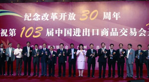 由廣州市工商聯(lián)、市總商會(huì)、市外商投資企業(yè)商會(huì)、市民營(yíng)企業(yè)商會(huì)共同主辦的“紀(jì)念改革開(kāi)放30周年暨慶祝第103屆中國(guó)進(jìn)出口商品交易會(huì)開(kāi)幕宴會(huì)”,14日在廣州白云國(guó)際會(huì)議中心舉行。廣州市長(zhǎng)張廣寧,市委副書(shū)記蘇志佳,市委常委、統(tǒng)戰(zhàn)部長(zhǎng)孔少瓊等,以及粵港澳商界代表逾1000人出席。