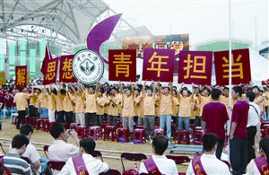參加歌會(huì)的演員分別來自廣州地區(qū)各少年團(tuán)體、中高等院校、武警部隊(duì)、邊防部隊(duì)等,演員隊(duì)伍超過3000人。歌會(huì)以一組組由大學(xué)生和武警官兵組成的斑斕圖案,一首首青春勵(lì)志歌曲,從《我的中國心》、《大中國》到《我們年輕人》,讓在場青年不時(shí)歡呼喝彩。