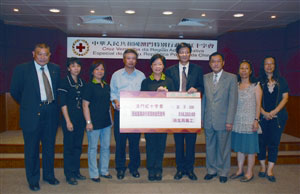 圖:澳門衛(wèi)生局職工代表送交善款。(圖片來源:澳門日?qǐng)?bào))