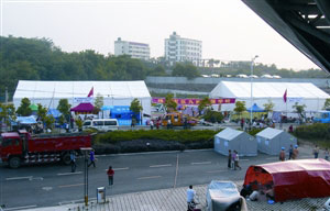 位于收容災(zāi)區(qū)民眾最多的九洲體育館內(nèi)的帳篷學(xué)校于上月19日開學(xué),供2000多名來自北川、安縣等重災(zāi)區(qū)的孩子上課,他們成為地震后災(zāi)區(qū)首批復(fù)課的中小學(xué)生。