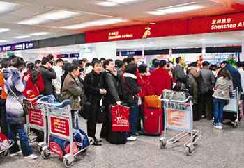 來往香港和內地的客流量很大,統(tǒng)計顯示,深航去年1000多萬旅客中,有近400萬是香港旅客或到香港旅游的人,占了整個運輸量近40%。而深圳機場提供的數(shù)據(jù)顯示,往香港的內地游客中,有1/4是通過深圳機場中轉至香港。同時,經(jīng)過香港中轉往內地的國際旅客數(shù)量也非常龐大。
