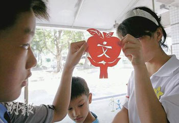 Dawn26日與4名同受艾滋病影響的內(nèi)地年輕人來(lái)香港訪(fǎng)問(wèn),先到香港單親協(xié)會(huì)探望10多名單親兒童,一齊透過(guò)剪紙表達(dá)愿望。Dawn用紅紙剪出蘋(píng)果,上面有個(gè)“文”字,她說(shuō),最希望母親可以讀書(shū),“吃下充滿(mǎn)知識(shí)的蘋(píng)果,那就有希望了”。