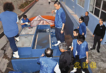 由于處于恢復(fù)狀態(tài)一直沒有進食,兩尾鱘魚還比較虛弱。據(jù)稱,工作人員在21日下午將以人工飼料,對6號魚進行引誘喂食,8號魚由于恢復(fù)稍慢,進食恐怕還要再拖延兩天。