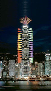 據(jù)香港媒體報道,據(jù)介紹,12月31日當晚,11時43分維港先上演“幻彩詠香江”,到了07年最后20秒,國金二期外墻便會開始發(fā)放煙火,附近4幢大廈的外墻亦會有液晶體大熒幕,會同步顯示時間,讓市民跟著倒數(shù)。踏入08年第一秒,外墻會發(fā)放“2008”字樣的煙火。緊接的是分半鐘加強版多媒體燈光、煙火、音樂匯演,國金會有8幕特別設計的煙火圖案,令這座維港兩岸最高建筑物更矚目。