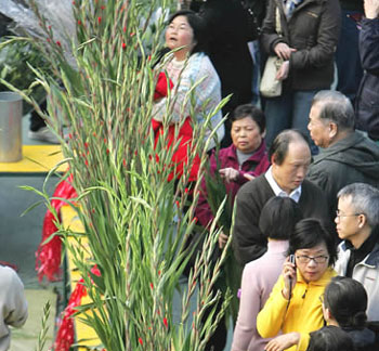 連續(xù)第35年在維園擺檔的“桃花王”老板譚先生說,今年內地受雪災影響,入貨較去年少,雖然年花價格略有提升,但檔內多棵萬元巨型桃花已被一早預訂,不少是居住在半山的“豪客”,預計今年生意額較去年同期多50%。