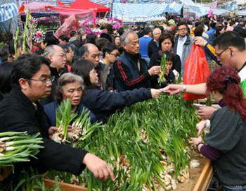中新網2月4日電 據香港大公報報道,天公造美,香港鼠年前最后一個星期日終放晴。3日維多利亞公園年宵市場人頭涌涌。雖然物價普遍上升,但不減市民辦年貨的意欲,全家總動員到年宵市場逛逛,有不少市民挑選年花迎新春,熱鬧氣氛迅即令現(xiàn)場升溫。