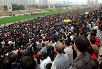 “資料圖:2008年2月9日” 二月九日,香港沙田馬場(chǎng)舉行新春賽馬,吸引大批市民入場(chǎng)。 中新社發(fā) 武仲林 攝
