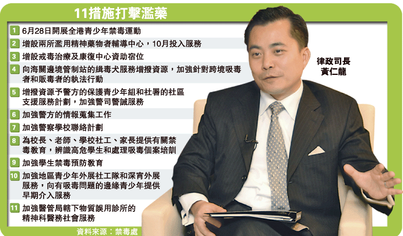 香港財(cái)政司長曾俊華在上月公布的財(cái)政預(yù)算案中,預(yù)留5300萬元的撥款,增加打擊毒品的資源。目前全港共有5間濫用精神科藥物輔導(dǎo)中心,服務(wù)全港五大區(qū)域。
