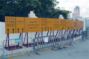 工程期間關(guān)閘邊檢大樓車道實施臨時改道。