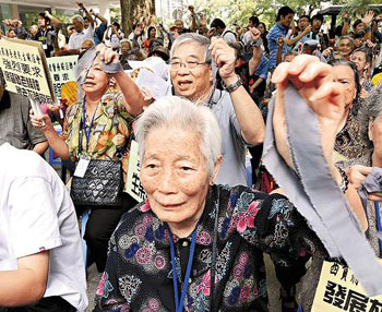 中新網(wǎng)10月27日電 據(jù)香港《星島日報》報道,在特首曾蔭權(quán)撤回生果金資產(chǎn)審查后,約100名長者與多個團(tuán)體在中環(huán)特區(qū)政府總部集會,要求港府全面撤銷現(xiàn)行生果金資產(chǎn)審查制度,令現(xiàn)年65至69歲長者,都可無條件領(lǐng)取1000元生果金。并促請港府研究貧窮老人問題,如增設(shè)“全民養(yǎng)老金”。