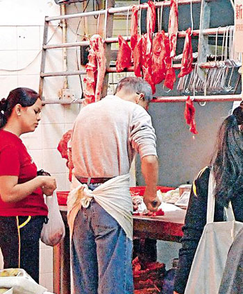 食環(huán)署人員日前突擊巡查全港多個街市及商場新鮮牛肉文件,抽取牛肉樣本作二氧化硫測試,當(dāng)中包括該報踢爆以冷藏“巴西牛肉扒”充新鮮牛肉的馬鞍山一間牛肉檔。