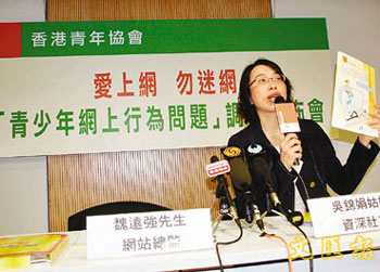 青協(xié)資深社工吳錦娟表示,青少年沉迷上網,減少了他們與家人溝通及其它興趣的發(fā)展時間,對成長造成負面影響。她指出,青少年在網上交友,難以辨別對方的背景及企圖,應避免與網友單獨會面。