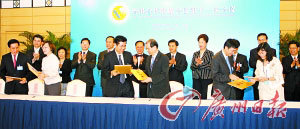 粵港雙方昨日簽署11項合作協(xié)議。(圖片來源:廣州日報)