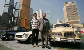黃毅力(右)和劉德浩(左)在名車前接受訪問 (圖片來源:香港大公報)