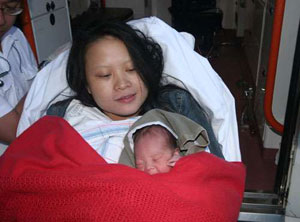 昨日中午十二時零二分,邱婦由丈夫陪同下乘坐粵港直通火車由廣州來港,坐于第三卡普通等車廂。當(dāng)火車越過深港邊境駛抵羅湖火車站時,突然感到腹部痛楚,腹中胎兒急不及待要出世,其夫慌忙找列車人員求助。九廣東鐵得知情況后,將火車停泊羅湖火車站側(cè)線,透過廣播向乘客宣布阻延原因。乘客中有一名美籍華裔女醫(yī)生和數(shù)名護(hù)士,聽到消息趕往該車廂提供協(xié)助,眾人分工合作,協(xié)助邱婦順利誕下麟兒,夫婦皆歡喜若狂,救護(hù)人員稍后亦趕至。