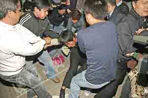 約四十分鐘后,救護(hù)員到場將各人送院治療。另一名衛(wèi)姓總領(lǐng)隊(duì)則指出,事后該旅行社司機(jī)及導(dǎo)游自行離開,一百多名旅客滯留現(xiàn)場。有人鼓噪,不準(zhǔn)涉案警員離去,局面一度僵持。警方兩部防暴警車駛至現(xiàn)場,逾三十名防暴警員車內(nèi)候命。