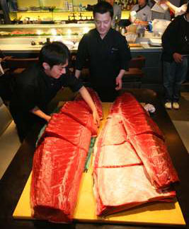 據香港大公報報道,東京中央批發(fā)市場在每一年開市所售的第一條魚,都是當日全場“最大、最靚”,傳統(tǒng)稱為“日本一”。板前壽司老板鄭威濤以約44萬港元投得該條重276公斤的“魚王”,是首次有港人投得“日本一”。“魚王”昨日已送抵香港,不少市民專程前往各分店一嘗“天價魚王”的滋味,刺身價錢由50元至150元一件不等。