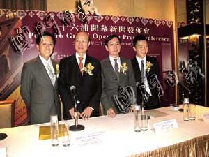 何鴻燊致開幕辭表示,為貫徹履行澳博對社會的承諾,澳博配合特區(qū)政府舊區(qū)重整計劃,選址內(nèi)港發(fā)展“十六浦”,相信可吸引更多居民和旅客聚集內(nèi)港,進(jìn)而惠及該區(qū)的原居民和商戶。