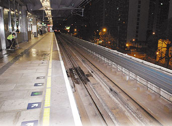 意外發(fā)生后,港鐵職員清洗月臺(tái)上的血漬。(圖片來(lái)源:文匯報(bào))