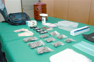 警員隨后帶同疑犯到其位于北區(qū)的寓所調(diào)查,在其睡房一個背囊內(nèi)發(fā)現(xiàn)電子秤、膠袋等懷疑毒品包裝工具。警員隨后作仔細搜查,在單位門外化寶盆內(nèi)發(fā)現(xiàn)一個密封的膠盒,內(nèi)里共有9包共重177克的毒品“大麻花”。