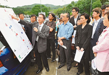 立法會(huì)共有7名議員到發(fā)生大車禍的事故地點(diǎn)考察,聽(tīng)取路政署官員和警方交通部介紹事發(fā)路面的交通安全安排。
