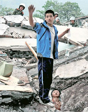 “你是我的好兄弟,我不想你死!”就是這一句生死誓約,北川中學(xué)高一(2)班的李陽(yáng)苦苦鼓勵(lì)他的同班同學(xué)廖波,并協(xié)助救援人員為廖波輸液,使廖波終于逃出生天。李陽(yáng)21日說(shuō),廖波的得救使他非常開(kāi)心,很掛念這個(gè)同學(xué)。
