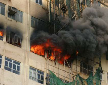 消防員趕抵時肇事單位已陷入火海,于是派人登樓疏散近百工人到安全地方,并架起云梯射水及派煙帽隊進入火場灌救;鹁21分鐘后升為三級,廠房內(nèi)冒出火舌及大量黑煙,整條街道曾被黑煙籠罩,望不到肇事大廈外貌。
