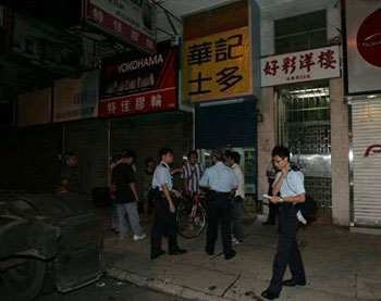 香港警方在發(fā)生劫案的小店外調(diào)查。(圖片來源:大公報)