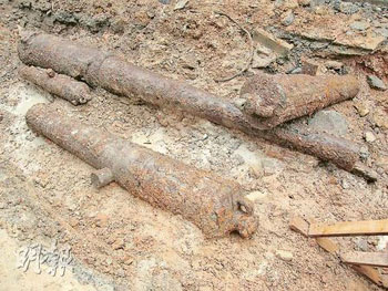 中新網(wǎng)9月19日電 據(jù)香港明報報道,香港金鐘英國駐香港總領(lǐng)事館對面地盤,挖出4支共重3噸的生銹大炮。爆炸品處理課人員檢查后,證實為沒有殺傷力的戰(zhàn)前古炮。
