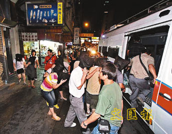 涉聚賭男女由探員押上警車。(圖片來源:文匯報)