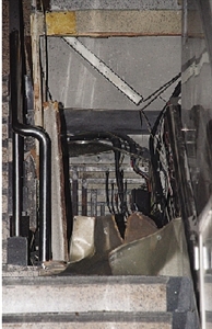 澳門金來大廈梯間電箱的不銹鋼門被炸飛。(圖片來源:澳門日報(bào))