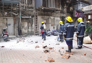 有商號以為金來大廈梯間電箱爆炸,立即報(bào)警求助。消防搶救車、水泵車和救護(hù)車接報(bào)到場調(diào)查,在現(xiàn)場拉起圍帶,封鎖懷疑爆炸的兩個(gè)地點(diǎn)一帶,避免行人走近。