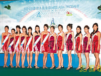 中新網(wǎng)10月14日電 據(jù)香港《文匯報》報道,13位“2008亞洲小姐競選(香港賽區(qū))”的候選佳麗,13日在亞視總臺首次會見新聞界。13位候選佳麗分別穿上大會安排的紅色和紫色Tube Dress現(xiàn)身,并作自我介紹。